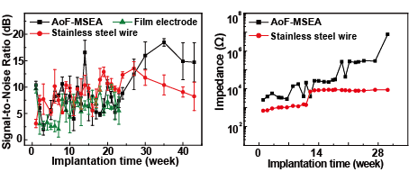 Data on electromyographic signals, signal-to-noise ratios, impedance, and other relevant measurements were collected internally from rats with multi-channel fiber electrodes, stainless steel wire electrodes, and thin film electrodes implanted for 43 weeks.