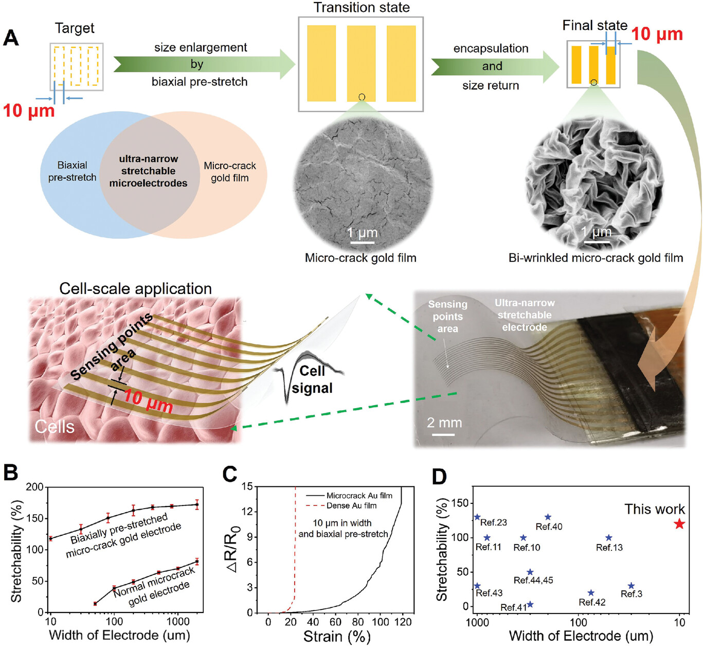 A Hybrid Strategy-Based Ultra-Narrow Stretchable Microelectrodes with Cell-Level Resolution