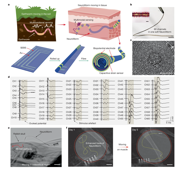 A movable long-term implantable soft microfibre for dynamic bioelectronics
